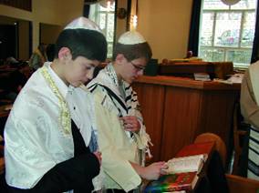 И вот настал день праздника. В синагоге собрались уважаемые люди еврейской общины, одноклассники виновников торжества. Поздравить Ивета и Антона и их родителей пришли руководитель городской общины Михаил Скоблионок и директор еврейской школы Ольга Трупп. Обряд бар-мицвы прошел в торжественной обстановке. Ребята, конечно же, волновались, так как им впервые предстояло присутствовать при выносе священного свитка Торы, читать благословления и принимать многочисленные поздравления. Много нового открыли для себя и их одноклассники, участвовавшие в празднике. После обряда посвящения в совершеннолетие и торжественной молитвы, которую провел раввин Ицхок Горелик, всех гостей пригласили к праздничному столу.