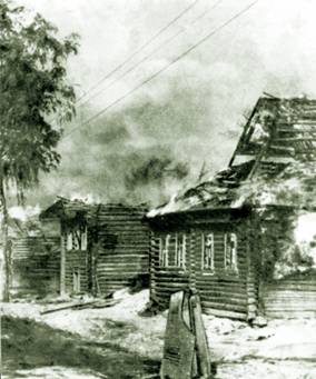 Отступая, гитлеровцы оставляли за собой горящие избы, руины жилых домов, смерть и запустение.