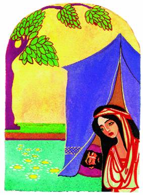 Рассвело. Женщина вышла, села на пороге. Показалась группа людей, направлявшаяся к их шатру. Быстрым и легким движением она распустила волосы. По плечам рассыпались длинные черные пряди. Мужчины застыли в изумлении. Услышали храп, доносящийся из шатра. Смутились и ушли. Пялиться на чужую жену нельзя. Тем более, когда она в таком виде.