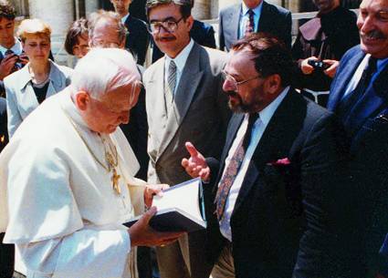 На аудиенции у римского первосвященника. Папа разглядывает книгу своих произведений, переведенных на русский.