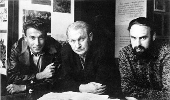Слева направо: редактор альманаха «День поэзии» В. Фогельсон, Б. Слуцкий, В. Корнилов. 1965 год.