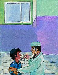 Врач, зашивая губы и что-то сооружая из остатков моего носа, говорит: