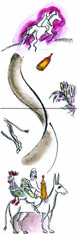 отправился в странствие верхом на осле, взяв с собой петуха, чтобы по крику его