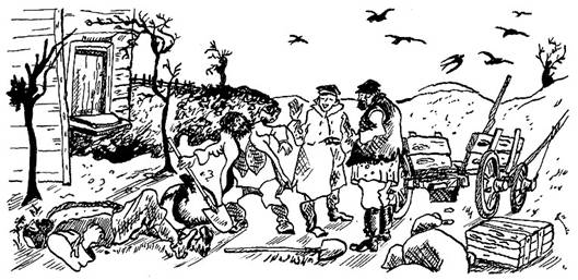 Ковырялись в саду. Похоже, мирные люди исполняют мирную земледельческую работу. Лениво переругивались: