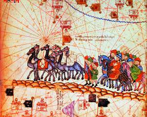 Купеческий караван на пути в Китай. Фрагмент из «Каталонского атласа».