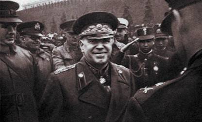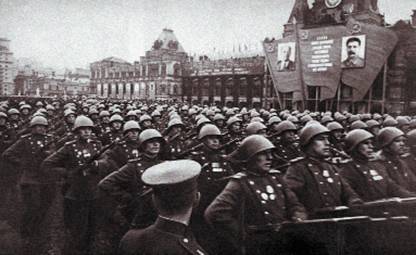Маршалы подъехали и к нашему полку, Жуков обратился к нам с приветствием. Мне показалось, что он очень возбужден, как и мы. После объезда войск Жуков произнес речь и закончил ее возгласом «Ура!». Мы в ответ прокричали «Ура!» троекратно. Над площадью громыхнул артиллерийский залп. Командующий парадом отдал команду прохождения торжественным маршем. Первым двинулся вперед Карельский фронт. Сводный оркестр – 1500 труб! – заиграл походный марш.