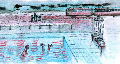 Шикнув на мальчишек, он вошел во второй бассейн, обернулся лицом к стене и медленно погрузился до шеи.