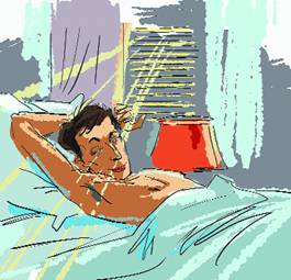 Он потянулся. Пошевелил под простыней пальцами ног, понаблюдал за тем, как бугры и выступы, как горные кряжи, вдруг пришедшие в движение, меняют очертания. Солнце полосами освещало его грудь. Он встал с нагретой солнцем постели, и дольки света, проникавшего сквозь жалюзи, скользнули вверх по его телу.