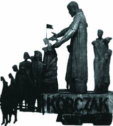 За военным кордоном, за толпами жителей – зеленое знамя. Это Януш Корчак и Дом сирот. Они явились в мир сказки, куда Старый доктор пытался вновь и вновь увести детей и куда вместе с ними пришло настоящее горе.