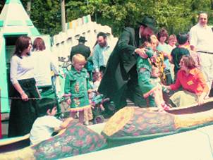 Сотни детей собрались на парковой площадке аттракционов, начались веселые конкурсы. Всем желающим родителям-мужчинам была предоставлена возможность выполнить заповедь наложения тфилин.