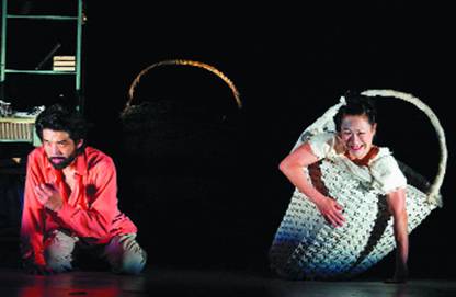 Акихито Окуно (слева) и Момое Татэно в спектакле «Иванов» в постановке японского режиссера Тадаси Судзуки. Москва. 2005 год.