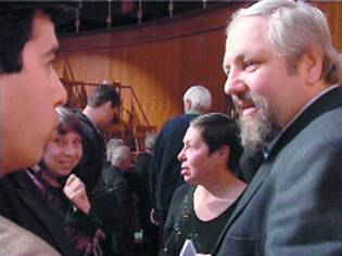 3 марта в МЕОЦе состоялась встреча с автором цикла телепередач «Еврейский вопрос – русский ответ» Ф. Разумовским. Он похож на дореволюционного профессора Московского университета. Такие лица смотрят с портретов на стенах аудиторий и читальных залов. Плавные жесты и особая – усмехаясь – манера говорить.