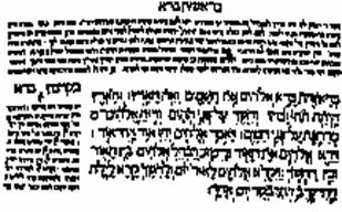 Первая страница текста Пятикнижия (Болонья, 1482 год), впервые изданного с комментариями Раши (вверху страницы), набранными особым «шрифтом Раши», который он использовал в рукописях.