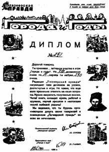 Темой игры «Города и годы» были города Советского Союза, их историческое прошлое, их нынешний день. В «Великих людях» речь шла о выдающихся деятелях науки и культуры разных стран мира. Все участники награждались дипломами.