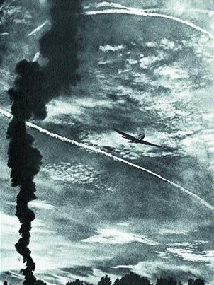 «Бастон» планировал над городом. Двигатели отказали: снаряд, разорвавшись в кабине летчика, искромсал приборную доску и перебил систему электропроводки, питающей приборы. Рыхлов едва удерживал самолет от падения. Бросив взгляд на порт, он уже зло приноравливался направить машину на немецкий корабль, над которым завис объятый пламенем бомбардировщик Шики Корданского.