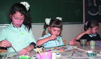 Руководителя этого «восточного» учебного отделения Владимира Сеплярского мы застали за занятием не вполне интеллектуальным: в одном из классов школы с перфоратором в руках он подвешивал плафоны. «Арматура под сверло попалась», – сетовал он. «Что ж вы сами-то?» – удивились мы. «А что? Мне рост позволяет». Владимир Исаакович действительно высокого роста. А в новом учебном году и без того высокий Сеплярский еще «подрос». Вернее, не он, а вверенное ему учебное заведение. С 1 сентября здесь, помимо детского сада и начальной школы, начала работать средняя школа – 5-е, 6-е и 7-е классы. Кроме того, появилась новая мебель в детском саду, переоборудованы классы, спальные комнаты для малышей. Работает компьютерный класс, проходят занятия хора, уроки ритмики, физкультуры. «Я знаю каждого ребенка и его родителей, потому что каждого сам сюда привел. Когда я пришел, у меня был один класс – два ученика, и в садике – четверо. А теперь, слава Б-гу, у меня 75 человек, в будущем году сделаю еще 8-й класс. Есть еще идеи… Но о них пока умолчим – чтоб они претворились в жизнь».