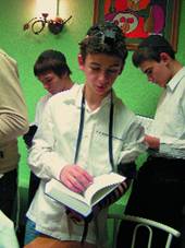 Пока мужчины танцевали с Торой и молились, для женщин провели экскурсию по школе. Через час ученики и гости собрались в актовом зале. Школьный хор исполнил песни на иврите и идише. Закончился праздник угощением.