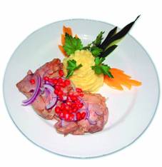 В прежние времена блюдо было субботним. На стол, за которым собралась семья, оно доставлялось прямо из печи, в чугунке, а затем раскладывалось по тарелкам. Этот стиль подачи кисло-сладкого мяса шеф-повар ресторана «Йона» сохраняет.