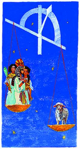 – Мои верные слуги, увидел я во сне весы. На одной чаше – вся знать Египта, а на другой – один белый барашек, который перевесил…Что это значит?
