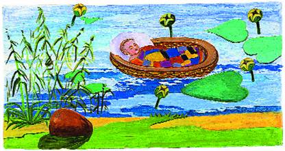 Жена Амрама – Йохевед – родила шестимесячного младенца. Три месяца она его кормила. Потом взяла ларец из папируса, обмазала смолой и отнесла сына на берег Нила. Сгорбленная, побрела домой. А Мирьям спряталась в камышах. Хотелось узнать, что же будет с братом.