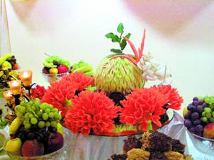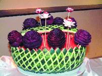 Английское слово carving переводится как «резьба», «резная работа». Но если резьба по дереву или камню сохраняется веками, то мастер по карвингу в ресторане работает с живым материалом, фруктами и овощами. Его шедевр живет лишь несколько часов. Это произведение искусства не предназначено для музеев и грядущих поколений, оно только ваше – и больше ничье, сделано для вас и ваших друзей, пришедших в этот вечер на ваш личный праздник. Как всё живое, оно недолговечно. И в этом, если хотите, присутствует драматический момент.