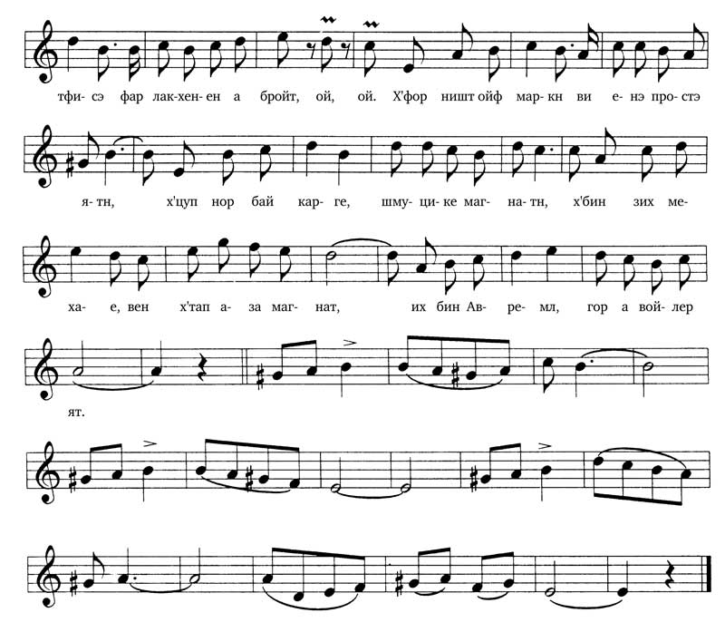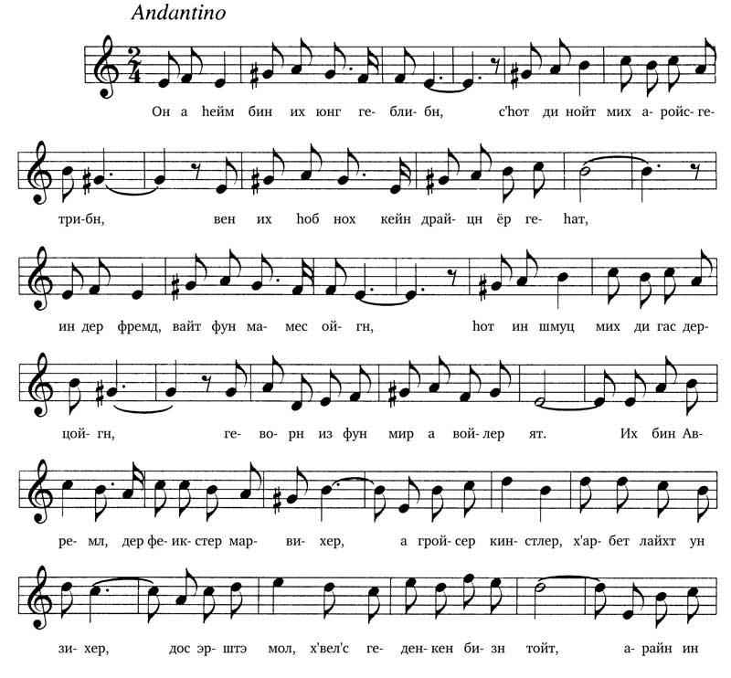 «Лехаим» намеревается издать этот сборник на русском, а пока из номера в номер публиковать песни Гебиртига с нотами, текстом на идише, записанным кириллицей, и максимально близким к подстрочному переводу литературным пересказом.