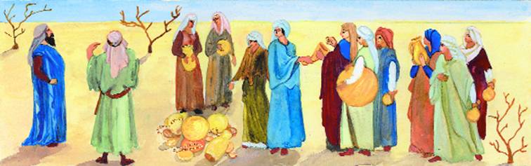 Все старейшины во главе с Аароном пришли в шатер Моше разделить с Итро праздничную трапезу.
