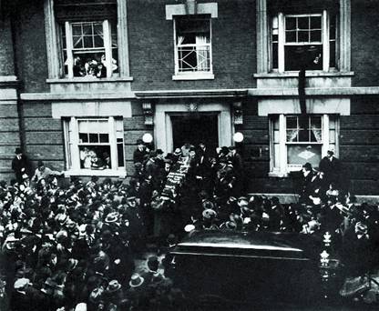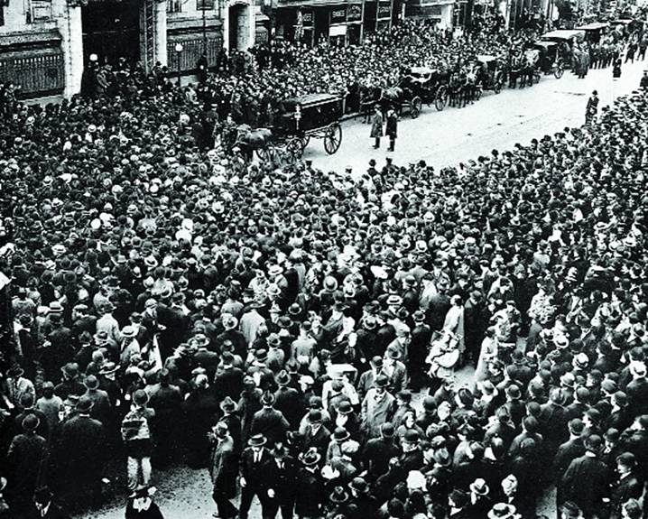 Похоронная процессия за гробом Шолом-Алейхема у синагоги.