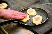 один к одному, из этого лепим оладьи толщиной в 7–10 миллиметров и обжариваем