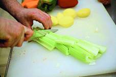 овощи: лук, морковь, нарезанный кружками картофель, кабачки и сельдерей. Все