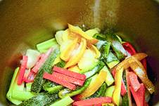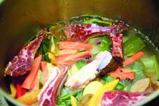 овощи должны быть крупно нарезаны. Берем телятину «на косточке», кладем в