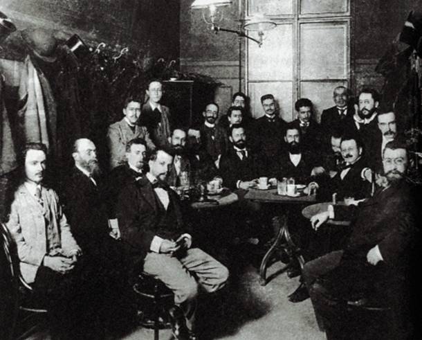 Встреча Сионистского комитета в венском кафе. Т. Герцль сидит за центральным столом.