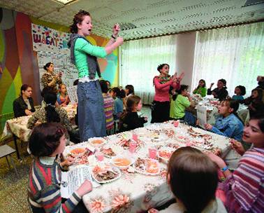 В семейном лагере для мам была предусмотрена отдельная программа: два часа до обеда и два часа после полдника их чада оставались с воспитателями, веселясь от души. А мамы трудились – для души. Лекции раввина Йосефа Херсонского из Москвы, психолога из Израиля и многих других «заезжих» гостей, а также рава Шломо и его супруги Дины. «Для тела» – аэробика, танцы, визажист, уроки кулинарии.