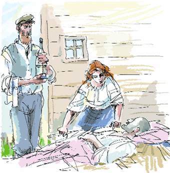 Но тут вся в слезах в избу ворвалась Эленуте.
