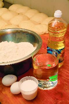 Раскатанное тесто – пласт размером 30 на 20 см – слегка посыпать мукой.