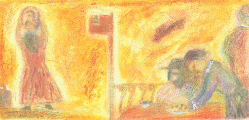 Сидят час, полтора, видят – кто-то начинает нарезать круги вокруг домика Хачуры. Сасон перегибается через перила, чтобы лучше разглядеть, и говорит: «Это сын Абрама-возчика». Вскоре мальчишка тихонько свистит кому-то в темноту, и кто же появляется? Сам Абрам-возчик. Папаша и сынок подходят к окну кухни, и младший, встав старшему на плечи, забирается внутрь через форточку. Изнутри открывает входную дверь и родитель заходит.