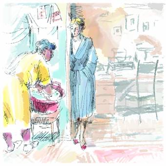 Три раза в неделю в два часа дня я открываю дверь миссис Купер, и тогда и только тогда ей отказывает голос. Глядя поверх моего левого плеча, она улыбается, торопливо бросает: «Спасибо, хорошо» и – юрк мимо. Ищет глазами малышку – та или в гостиной, в переносной колыбельке, или в детской, в кроватке. Обнаружив ее, она разговаривает со мной более свободно – через ребенка. Но под вечер, когда миссис Купер уже стоит в дверях, она говорит, как ей и свойственно, и тут голос у нее сильный, неторопливый.