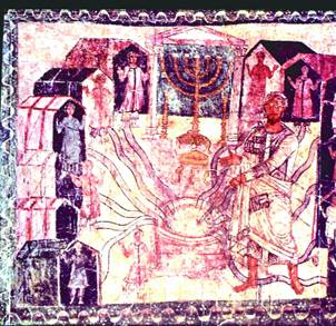 Этот фрагмент росписи синагоги в Дура-Европос украшал обложку хрестоматии об источнике и колодце. 244 год.