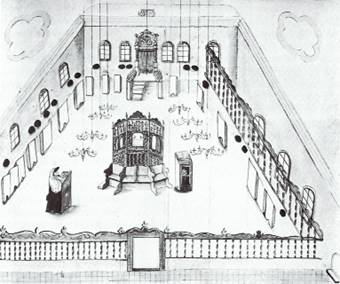 Интерьер западноевропейской синагоги. Рисунок. 1754 год.