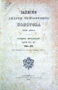 Несмотря на то что его перу принадлежит поистине огромное число сочинений на самые разные темы (от агрономии до «електрицизма»), для потомков все-таки он в большей мере известен как автор мемуарных записок «Жизнь и приключения Андрея Болотова, описанные им самим для своих потомков». В тексте этих записок мы находим два эпизода, посвященные «встречам» Болотова с еврейской культурой. Все это касается его пребывания в Кенигсберге, где с 1757 по 1761 годы он служил переводчиком в канцелярии русского военного губернатора Восточной Пруссии, занятой в то время российскими войсками. Однажды Болотов попал на «шева брохес», т. е. один из семи дней пира после свадьбы. Но с интересующей нас точки зрения это событие описано довольно бегло и поверхностно. Значительно интереснее выглядит другой эпизод: посещение им синагоги.
