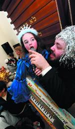 Поющий раввин Меир Брук с дочерью на праздновании Пурима.