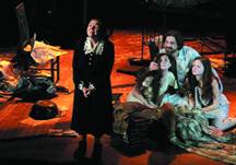 Как в хрестоматию истории театра войдет сцена, где в камеры Освенцима идет лагерный оркестр. Под Шуберта выходит шеренга людей с духовыми инструментами, по команде заключенные раздеваются, поворачиваются к зрительному залу. В газовые камеры действительно гнали обнаженными под торжественные звуки классической бессмертной музыки. На этом спектакле, сама видела, плачут мужчины, с досадой смахивая слезы с глаз, чтобы не мешали смотреть. Подсвеченные снизу лица вглядываются куда-то в бессмертие… Разворачиваются и уходят. «Песнь моя лети с мольбою...»