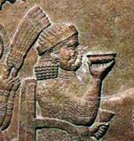 Деталь ассирийского рельефа: корона в виде крепостной стены на голове царицы.
