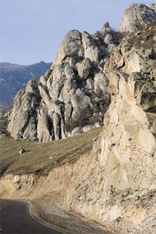 По крутому горному серпантину мы взбирались на Буйнакский перевал. В утреннем солнце окрестные горы были фантастически красивы. Трудно представить, сколько скальной породы пришлось «перелопатить», чтобы проложить эту удобную горную дорогу.