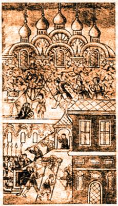Стрелецкий бунт 15 мая 1682 года. Миниатюра из «Повести о зачатии и рождении Петра Великого».
