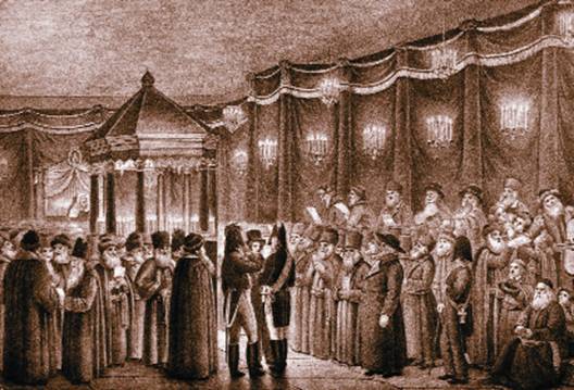 В то же время многие представители местной администрации, заинтересованные в надежном союзнике среди подвластного им населения, постепенно проникались доверием к евреям. Согласно свидетельству волынского губернатора М.И. Комбурлея от 2 августа 1812 года, «особенную приверженность к России в нынешнее время показал еврейский народ: они, страшась нашествия неприятеля, учредили между собой пост и молитву для испрошения российскому оружию успеха и счастия»[5]. Разумеется, и еврейская благотворительность в пользу армии, и усердие поставщиков, и антинаполеоновская агитация еврейских лидеров и патриотический настрой масс так или иначе доходили до сведения администрации, влияя на ее отношение к евреям. Однако в конечном итоге не эти факторы совершили перелом в сознании высшей власти, выразившийся в монаршем «благоволении».