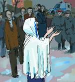 Стемнело. Луну заслонили грузные тучи, нависшие над куполом синагоги. А парень все молится. И прихожане, сбившись на улице в кучку, всё слушают его. И оба милиционера все еще там, хотя их и не видно. Виден только белый талис – он молится, светясь в темноте.