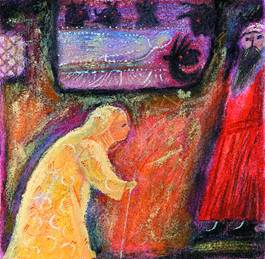 Когда рассвело, она встала, надела свое платье и пошла ко двору цадика. Встретил ее казначей и спросил: куда ты направляешься, женщина? Достала она свой платок, развязала узелок, вынула золотой червонец и вручила ему, чтобы позволил ей тут же пройти к цадику. Взял казначей червонец и хотел проводить ее внутрь. Явился к нему искус наживы и стал нашептывать: женщина, давшая червонец, может дать еще один и еще один. Сказал себе казначей: один хорошо, а два – лучше, не говоря уж о трех или четырех. Глянул на нее приветливо и сказал: уж не из Страны ли Израиля ты пришла? Что нового на Святой земле? Отвечала она: не расспрашивай меня, милый человек, с того дня, что выехала я из Страны Израиля, настигла меня беда великая, так что я и себя не узнаю. Будь милостив, проведи меня немедля к ребе. Закатил казначей глаза к небесам и горестно так вздохнул, как тот, кто печалится печалью всех живущих, и сказал: много бед есть в нашем мире, и твоя беда уж верно не мала, но милосердие Создателя еще больше, так что не отчаивайся, потому что сегодня никак нельзя попасть к нашему ребе. Подожди до завтра, и я введу тебя прежде других, и ручаюсь тебе, что наш ребе даст тебе свое благословение, и с той минуты и до конца дней твоих не будешь знать ни горя, ни лиха. Вернулась та женщина ни с чем в свою временную обитель и принялась ждать завтрашнего дня.
