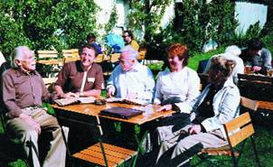 В центре – М. Харитонов и Б. Хазанов с супругой Лорой. В гостях у предпринимателя Карла-Хайнца Плааса и его супруги.