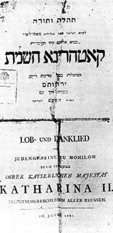 Поэма, преподнесенная  Екатерине II евреями Могилевского уезда во время визита императрицы  в Шклов.